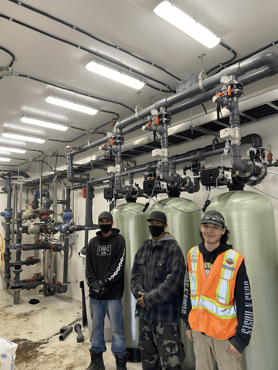 Some of the local workers inside the pumphouse standing next to the water treatment system. Yes, this was during the COVID-19 pandemic in 2020. We made it through together. Thanks guys for your hard work and Kwadacha Nation for your hospitality!