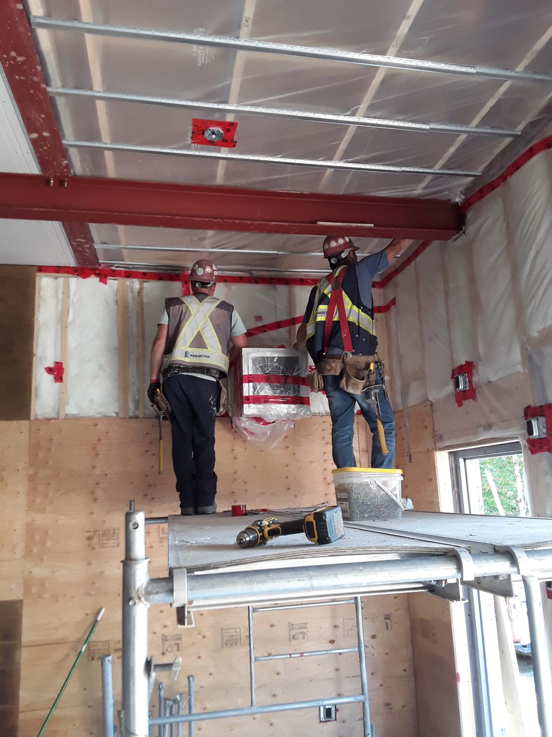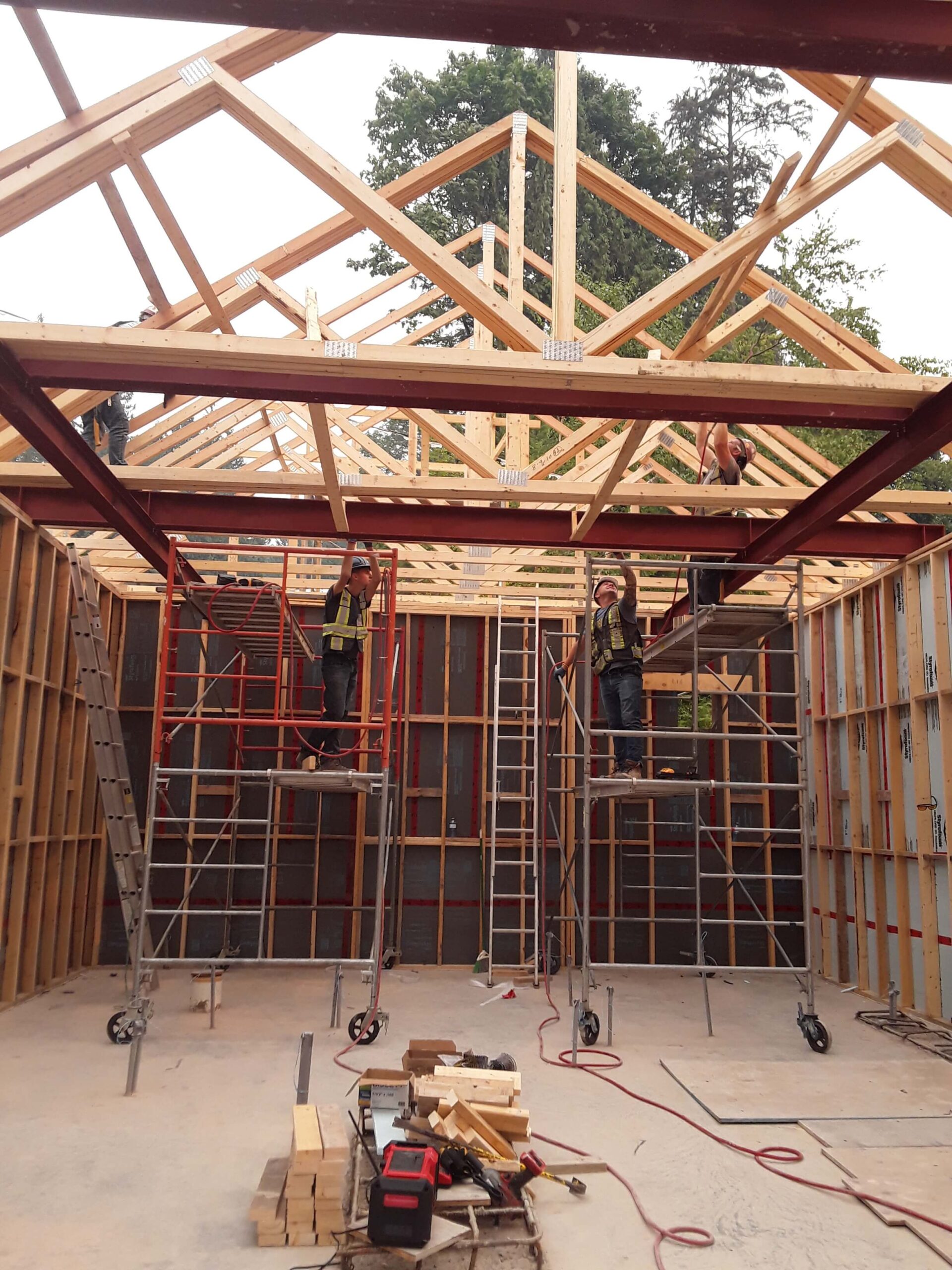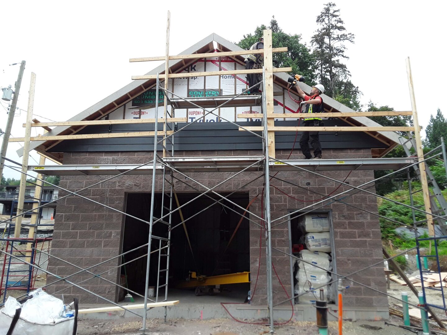 Booster Pump station for a new townhouse development in Mission, BC. The new 900 square foot pump station includes five vertical, multistage centrifugal pumps, a 100 HP horizontal, split case fire pump, epoxy-coated process piping and concrete block wall construction with sheet metal roofing.