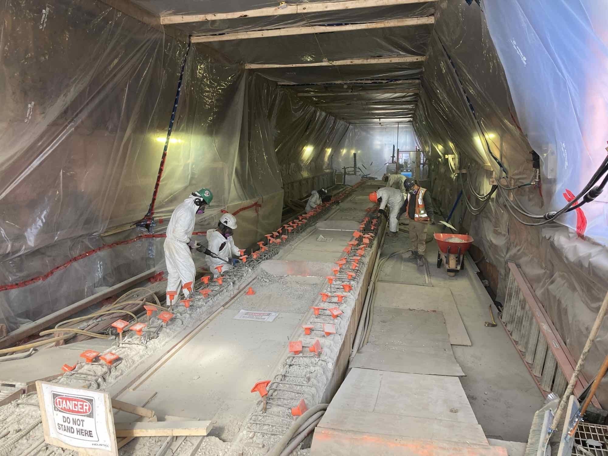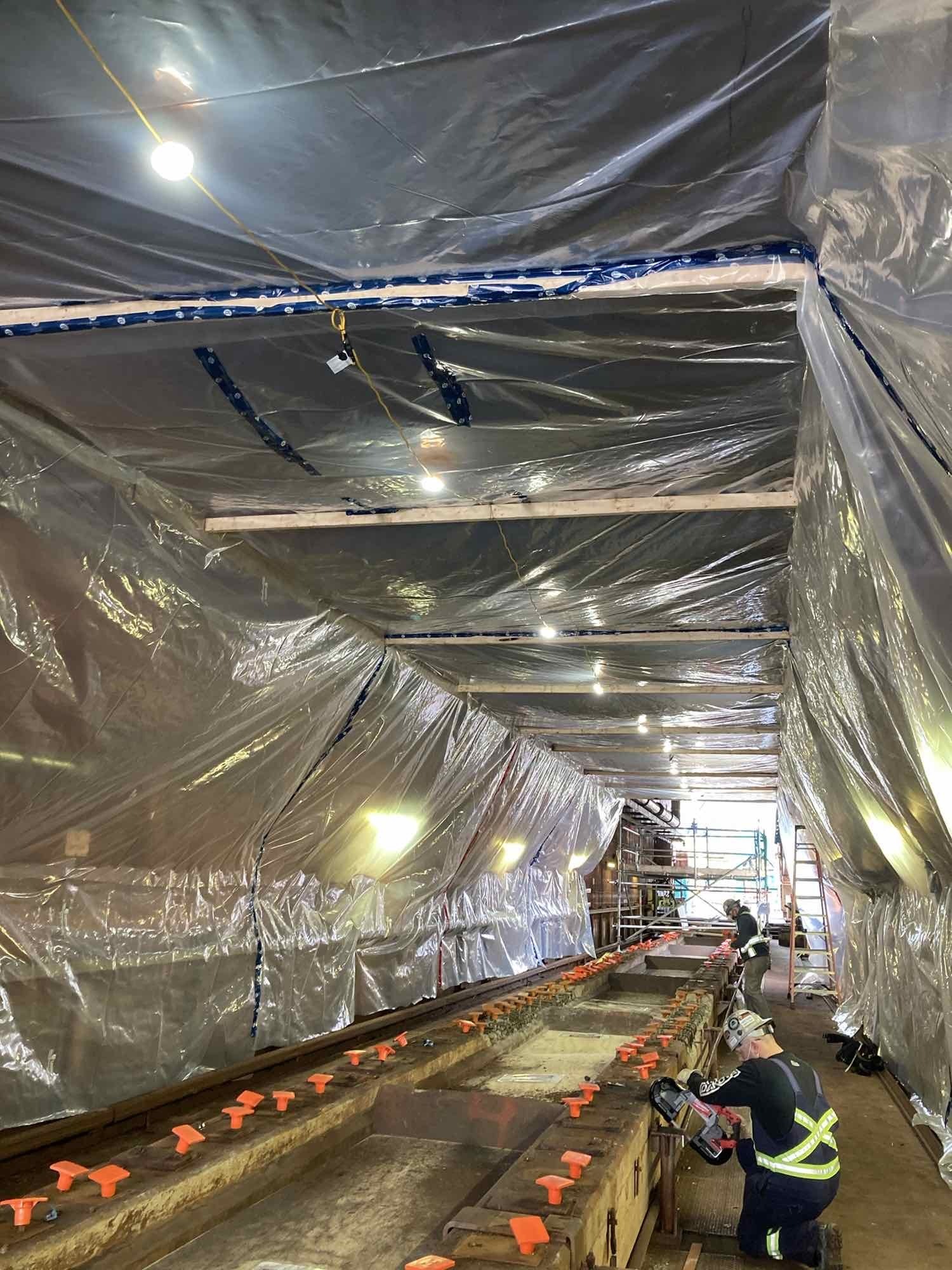 - Removal and re-installation of railcar pounder guide rail, existing plant services attached to the rail beam as may be necessary to facilitate concrete repairs to the rail beams.