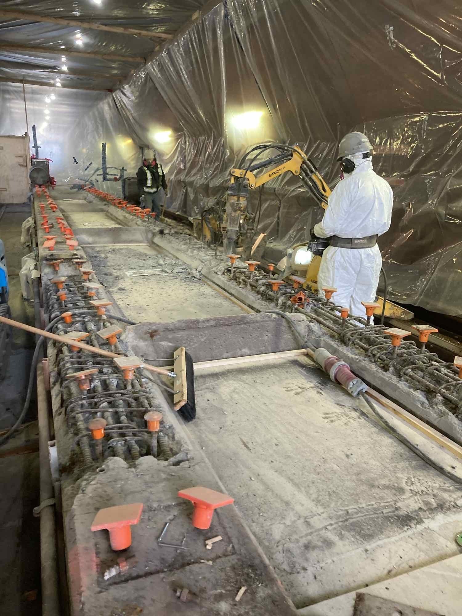 - Chipping and removal of concrete at tops of rail beams and top surfaces of approach slabs.